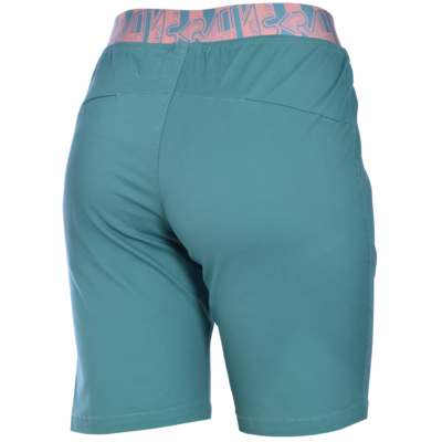 Der breite, elastische Bund macht die kurze Hose noch bequemer. Praktisch sind die Taschen vorne und die Tasche hinten. In ihnen lassen sich kleinere Sachen griffbereit verstauen. Bequem, stylisch und robust – für Kletterfans einfach toll!
